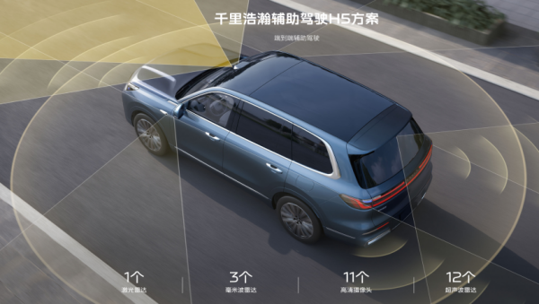 辅助驾驶上,银河M9搭载吉利千里浩瀚H5方案,采用激光雷达融合感知硬件,支持车位到车位的全场景端到端领航辅助方案,并支持AES紧急转向避让、全场景爆胎稳定控制等高阶主动安全功能,充分满足用户日常使用。
