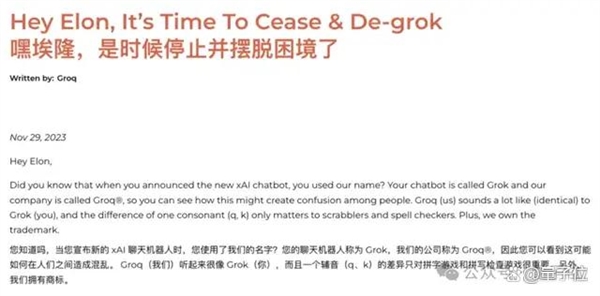 还有他们的名字——Groq和Grok看起来很像不是么?他们甚至就此“喊话”过埃隆马斯克,痛斥其“剽窃”自己的名字。