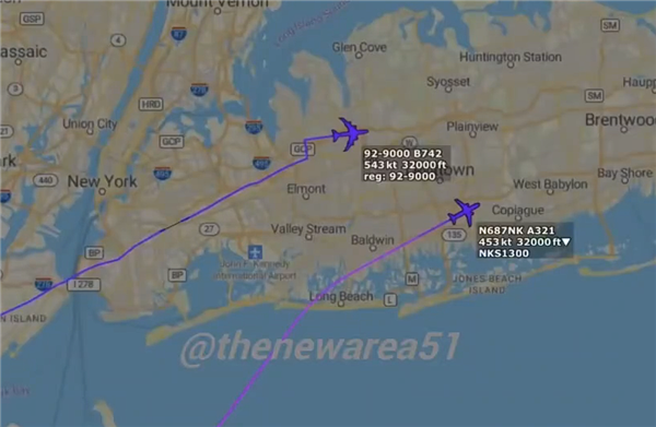当“空军一号”飞到纽约长岛上空,空管发现一架来自美国精神航空的飞机距离空军一号距离过近,于是要求它右转20度,然而对方并无应答。