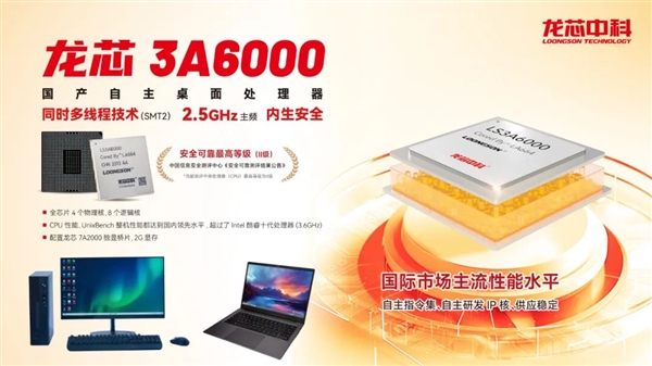 至此,新一代龙芯“三剑客”——龙芯3C6000系列服务器CPU、龙芯3A6000桌面CPU、龙芯3B6000M终端CPU,均已跻身当前最高安全等级行列。