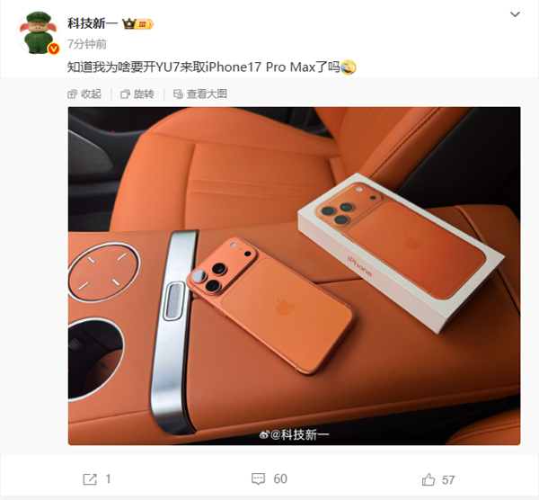 最让人吃惊的是,小米YU7“珊瑚橙”撞色了今年最火的iPhone 17 Pro星宇橙色。有博主晒出小米YU7和iPhone 17 Pro Max的同框照片,可以看到几乎一模一样。