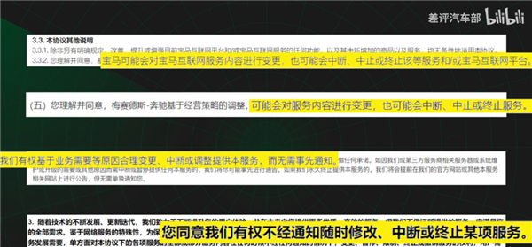 毕竟通看各家的购车合同中有关车联网服务的部分,都不约而同地写着车企有权随时中断服务”,或者类似的规定。。。