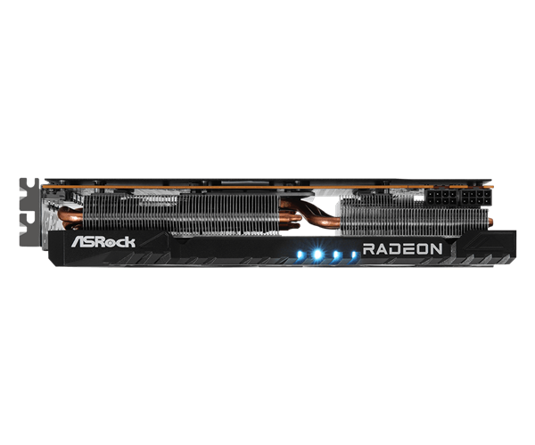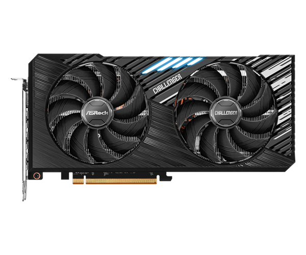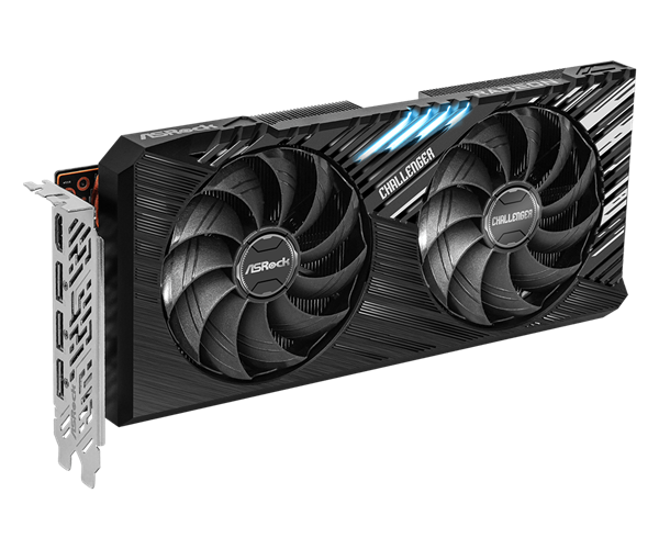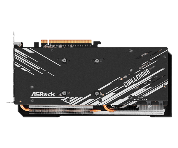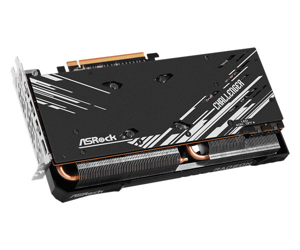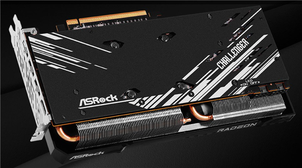 这款“RX 7700 Challenger 16GB”完全承袭了RX 7700 XT Challenger 12GB的设计,2.5插槽身材,正面两个智能启停风扇、简约RGB灯光,后置金属背板,内部是五条直触热管、大量鳍片。