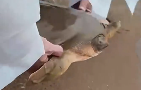 目前,这只被捕获的韩江鼋已被运载至自然保护区江段放生。