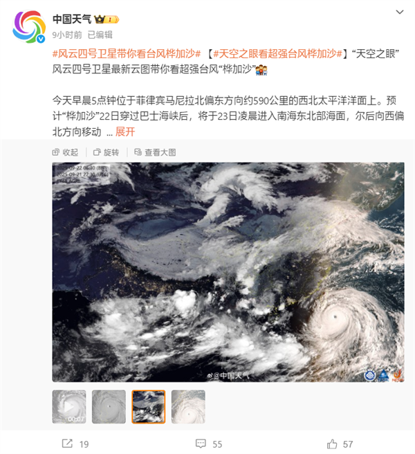 中国气象局气象分析师表示,“桦加沙”环流个头大,强度极强,很有可能将会成为今年以来影响我国最严重的一个台风。