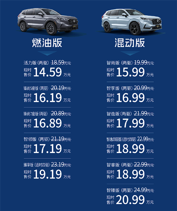 9月22日消息,东风本田CR-V 30年荣耀款正式上市,共推出11款车型,指导价18.59万-24.99万元,限时售价14.59万-20.99万元。