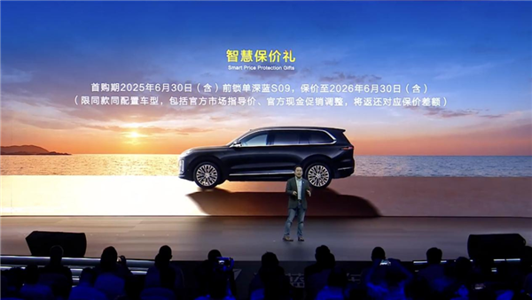 在发布会上,他提到现在行业降价现象比较普遍,S09会不会上市几个月就降价?邓承浩表示,要像保护品牌一样保护深蓝S09,没有降价的想法,承诺深蓝S09“一年保价”。
