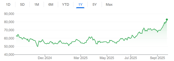 本周一,三星股价早间一度上涨5%至83400韩元,创下过去一年以来新高。在三星大涨的带动下,韩国综合股价指数上午上涨0.8%。