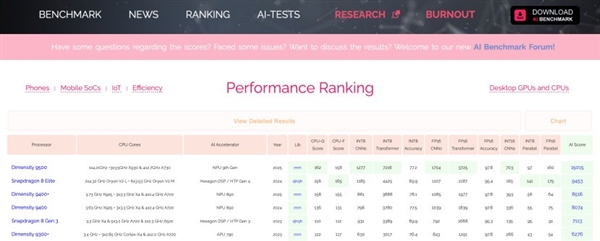 在对于当下AI手机体验至关重要的NPU方面,天玑9500采用了大量创新。首先其配备了性能超群的NPU 990 生成式AI引擎2.0,在峰值性能相比天玑9400提升111%的同时,峰值功耗下降了56%(数据来自联发科官方),在ETHZ AlBenchmark测试中可以取得15000分的惊人得分,因此天玑 9500 荣登权威的 ETHZ AI 性能测试榜单第一。