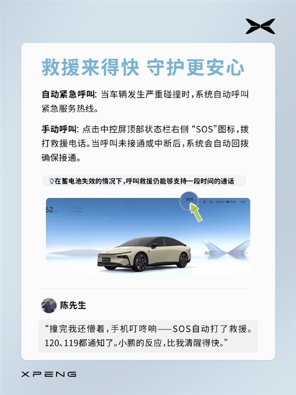据介绍,在该事故发生时,小鹏SOS自动救援系统立即启动,同步呼叫120与119救援力量。