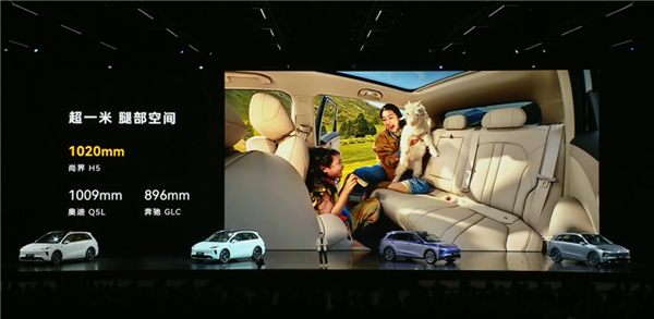 主要原因是,他们将车辆的A柱前移、D柱后移,实现了乘员舱和载货空间的最大化。与奔驰GLC和奥迪Q5L两款豪华SUV相比,尚界H5的乘员舱空间为1908mm,超越奔驰、奥迪两款豪华SUV。