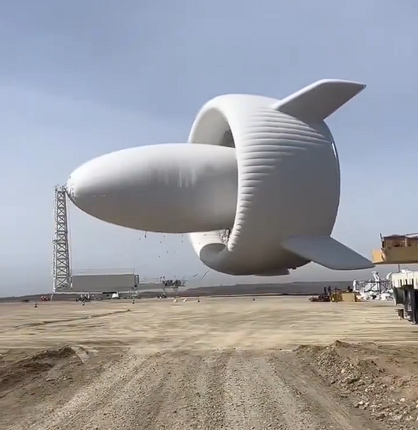 其外形酷似巨型飞艇,尺寸达长60米、宽40米、高40米,采用氦气填充的主气囊与环翼构成的涵道结构。