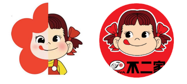 此外,有网友还指出,将华与华为蜜饯品牌“雪海梅乡”设计的LOGO,与日本食品企业“不二家”的经典小女孩形象拼接在一起对比,认为二者存在“撞脸”现象。