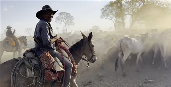 视频中,俞孔坚身穿红色T恤背着斜挎包,他感叹道“南美潘塔纳尔天然湿地正一步步被牧场吞噬”。
