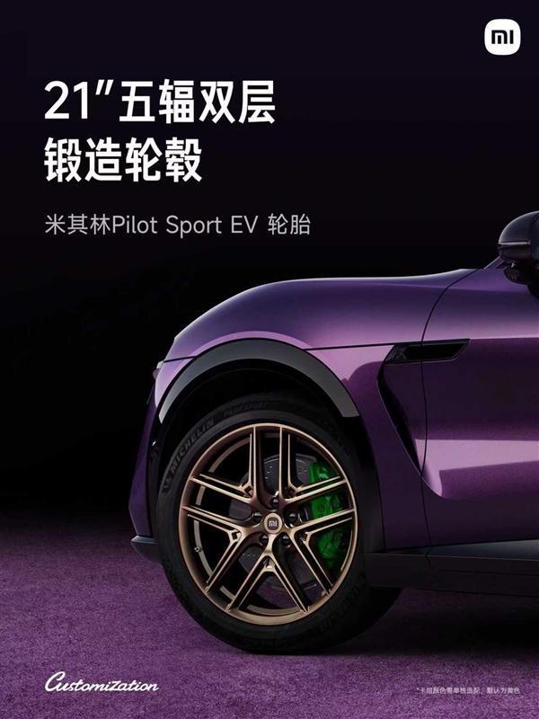 此外,小米定制服务还新增了21英寸的五辐双层锻造轮毂,这个轮毂用20多把刀头铣削,铣削加工耗费将近11个小时,非常精致,一共有 4 种颜色可选,分别为琥珀金、月岩银、镜面银、碳黑。