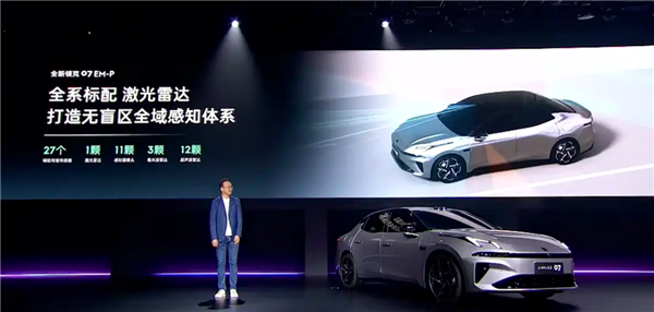 辅助驾驶能力大幅升级,也是新车最大的亮点,新车全系标配激光雷达,还有11颗感知摄像头、3颗毫米波雷达以及12颗超声波雷达,共27个辅助驾驶传感器。