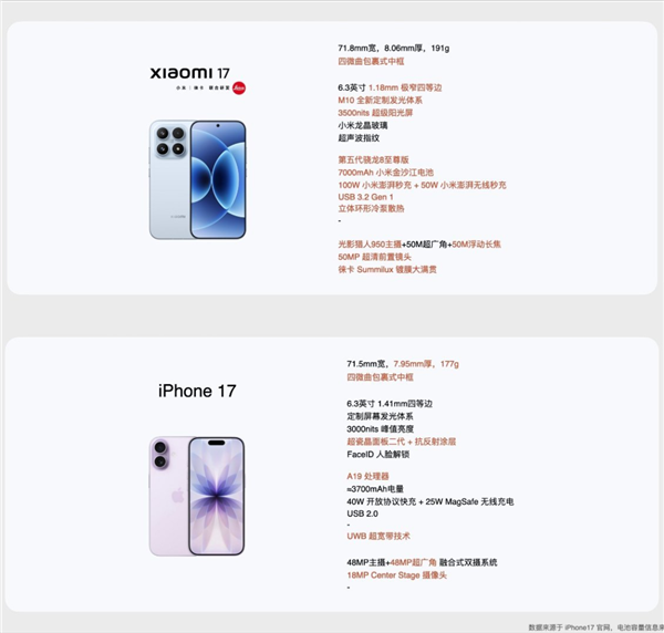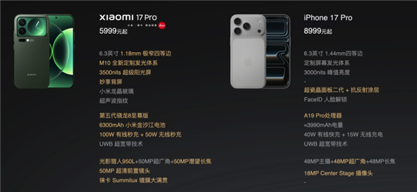 甚至发布会最后还直接贴了两家 17 的参数对比,算是把对标进行到底了。