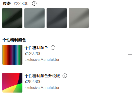 当然,价格也非常保时捷,一个定制车漆就能要你十几万块钱,比一辆车还贵。