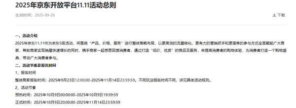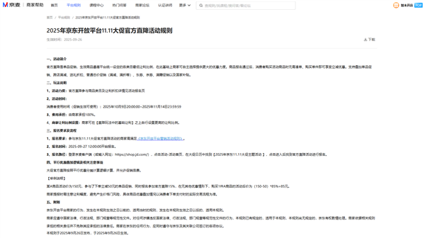 日前,京东公布2025年“双11”招商规则,根据规则,今年京东“双11”分为预热期和正式期。
