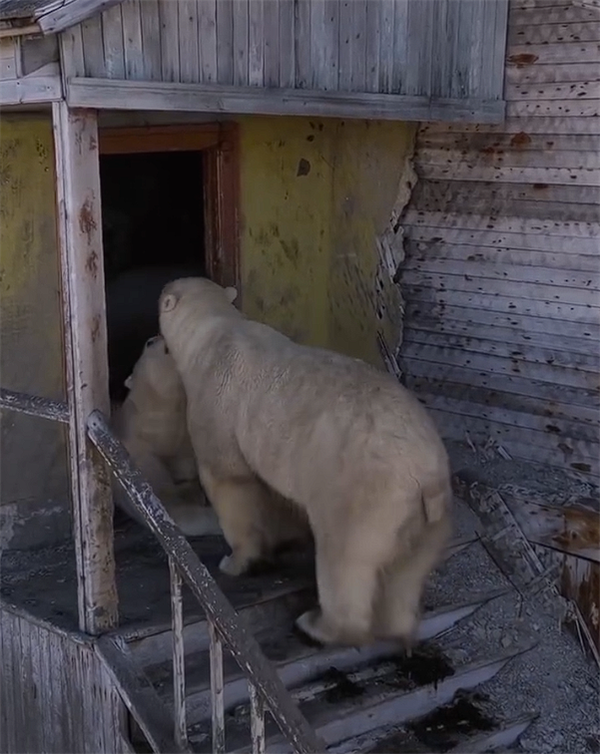 科考站关闭后,站内建筑逐渐废弃,但意外成为北极熊的栖息地,吸引了不少旅游观光者的目光。