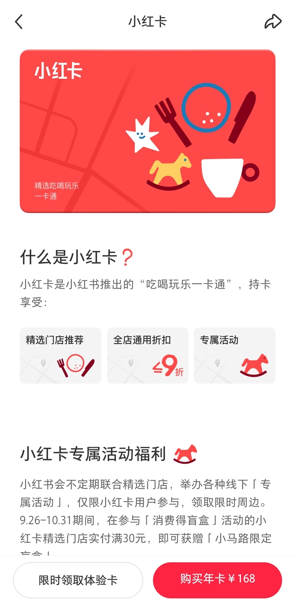 该卡年费定价168元,用户可在数千家精选本地门店享受全年全店9折优惠,同时还能获得“精选门店推荐”、“专属活动参与权”等附加权益,可谓“吃喝玩乐一卡通”。
