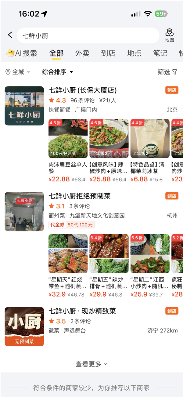 搜索查询发现,目前七鲜小厨(长保大厦店)在淘宝闪购月销量达到2000单,在美团外卖月销量达400单。