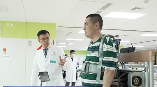 手术取得圆满成功。经过两周持续优化的精准神经调控,刘博奇的四肢肌力显著恢复。三个月后,团队为他量身定制了“脊髓接口+外骨骼机器人”协同康复方案。在脊髓接口的精准调控与外骨骼机器人的辅助支撑下,刘博奇成功迈出了受伤后的第一步。