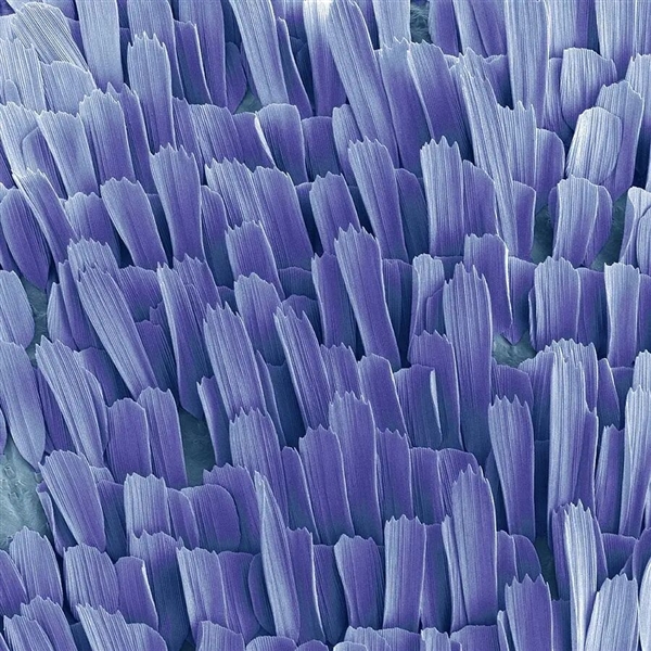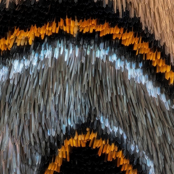 这些鳞片大小在50-200微米之间——不同种类不同大小,而且每一种飞蛾的鳞片都有独特的结构和排列。
