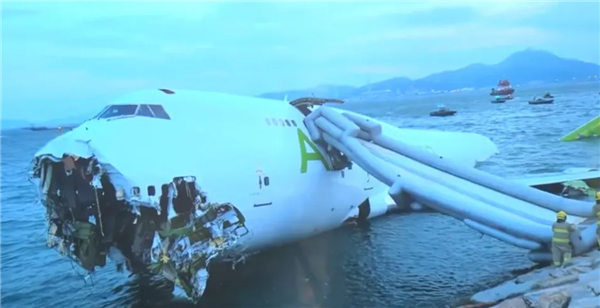 货机在北跑道07L降落时以49节(约91公里)与地勤车相撞,并冲破海堤坠入海中,造成地勤车乘客及司机两人死亡。 货机上四名机组人员全部通过逃生滑梯安全撤离,随后被送往医院检查。