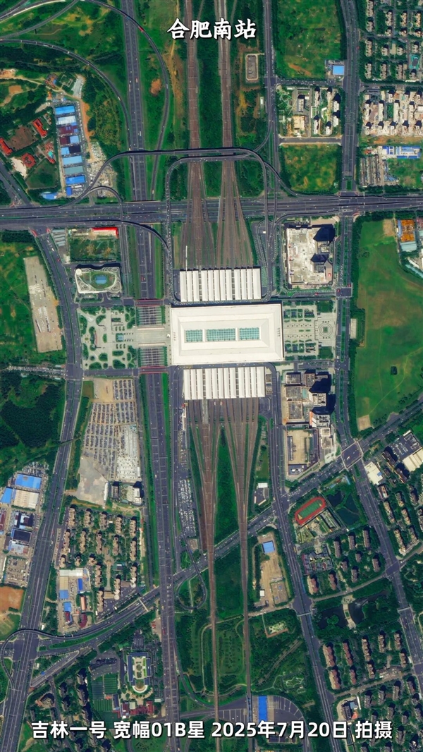 合肥南站,位于骆岗中央公园的西北侧,与公园仅隔一条龙川路,步行即可到达,其外观汲取了安徽徽派建筑的意象,以“四水归堂”为设计理念,体现了地方文化特色。