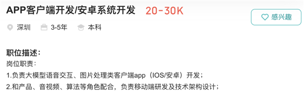 此外,公司还在招APP客户端开发岗位,负责开发图像处理APP。