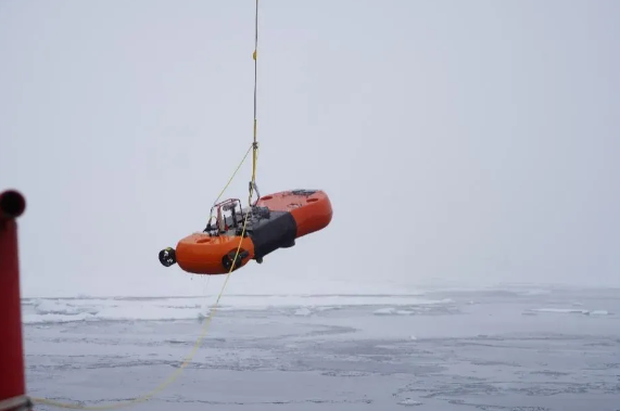 考察期间,四名科考队员在北冰洋高纬度冰区执行冰下作业,借助“极蛙”AUV同步获取冰底地形与冰下环境数据。中山大学遥感科学与技术学院博士新生、科考队员李毅博表示:“相比传统无人潜航器,‘极蛙’AUV具有轻量化、高机动性和多模态运动能力等优势,能够适应多样化的极地观测需求。”