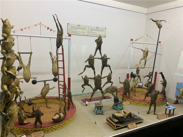 这家博物馆里的青蛙标本摆出各种姿势,模仿人类的行为,正在努力像人一样“活着”。