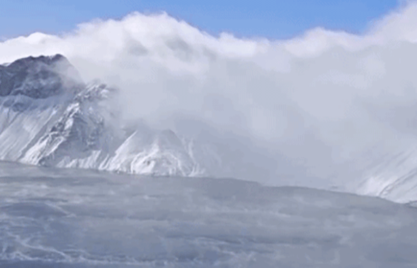 此时天池尚未封冻,湖面温度仍高于空气温度,水汽在接触冷空气后迅速凝结成雾。加之水面与空气均处于流动状态,且流动方向基本一致,共同造就了这一如梦似幻的蒸发雾奇观。