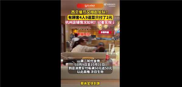 近日,有网友在社交平台上称,这两天全国各地西贝餐厅又开始排长队了,之所以排队,是因为发放了大额的就餐代金券。