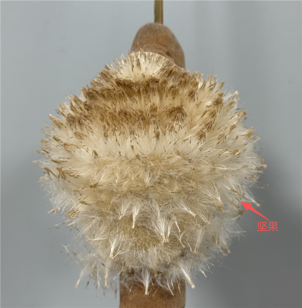 水烛的果实为坚果,每一粒坚果中蕴含着一粒种子,一个成熟的果序可以释放出20 万~70 万粒种子.