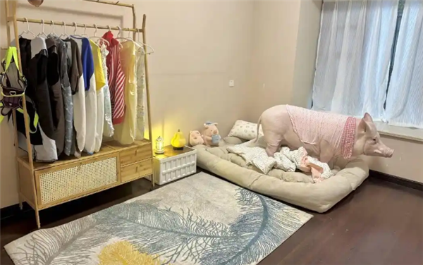 月月和男友嘴嘴(化名)对“猪蹄花”的宠爱可谓无微不至。他们特意在家中空出一间房,精心为它打造了一个专属的“私猪卧室”。这个卧室可不简单,不仅配备了独立卫浴,还设有衣帽间,各种设施一应俱全,简直比许多人的房间还要豪华。