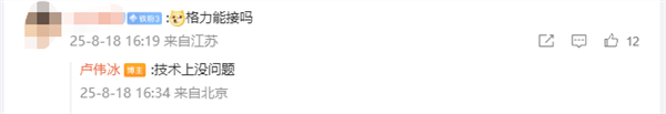值得注意的是,此前小米集团总裁卢伟冰也曾回应过类似问题,今年8月有网友提问格力能接入米家吗,卢伟冰回复称“技术上没问题”。