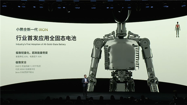 IRON拥有3颗图灵AI芯片,算力2250TOPS,性能出众,可实现对话、行走、交互等高阶智能,并率先搭载全固态电池,极致轻量化和安全。