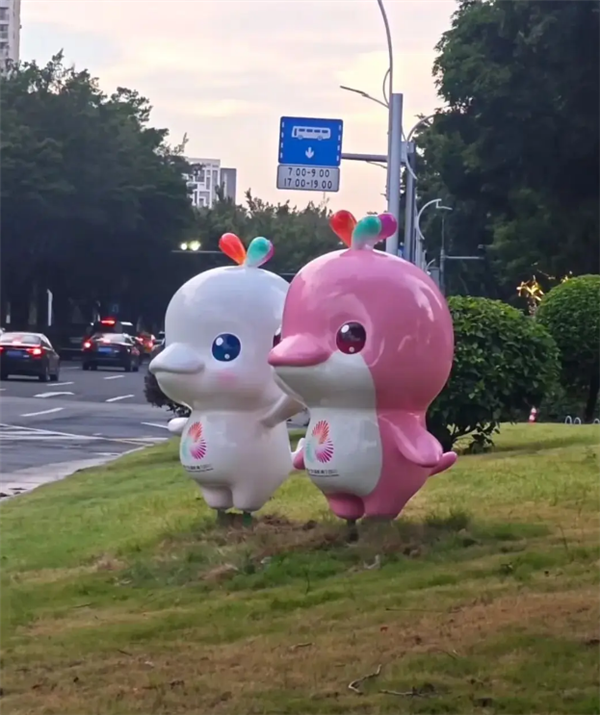 有意思的是,不少网友将海豚吉祥物“错认”成鸡,笑称“正面像海豚,背面更像走地鸡”。