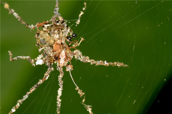 2025年11月6日,澳大利亚科学家们在《生态与进化》杂志上发表了一篇文章,表明在大自然中发现了两种擅长做“稻草人”装饰的小蜘蛛。