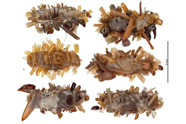 原本软软的、长度1厘米左右的毛毛虫,套上这个外壳后,只要不乱走乱动,蜘蛛压根辨别不出来,还以为是自己吃剩的食物残渣。