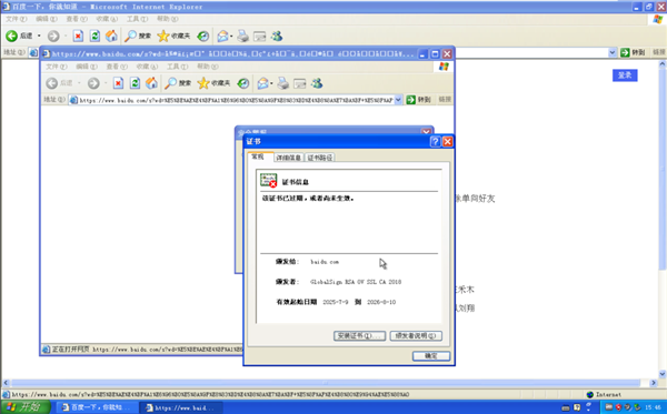 继续点击 “证书有效” 按钮,你就会看到百度正在使用的 SSL 安全证书。