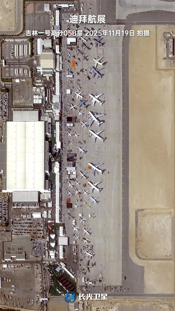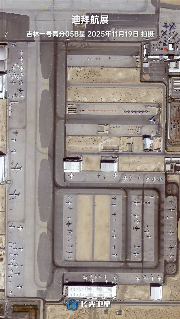 11月21日消息,近日,吉林一号卫星从太空捕捉到了第十九届迪拜航展的高清影像,为世界呈现了一场别开生面的“太空观展”体验。