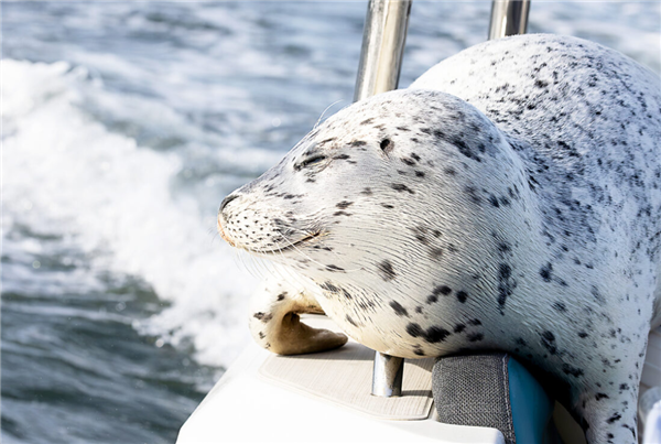 随后,船上的人发动船只,带着海豹向岸边驶去,快靠岸的时候,海豹觉得足够安全了,就跳下船走了。