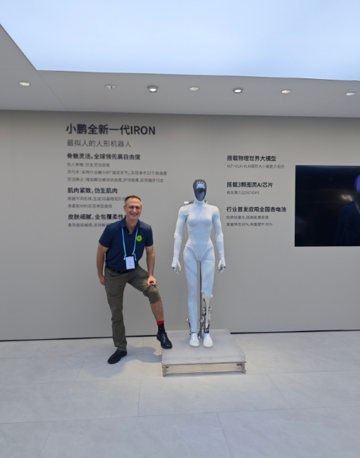 此次亮相的机器人,正是此前在小鹏科技日上因以高度拟人的猫步姿态行走而引发轩然大波,随后现场“剪腿自证”的全新一代IRON。