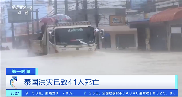 截至目前,洪灾已致泰国南部四府至少13人死亡,全国累计41人遇难,超过268万人受影响。