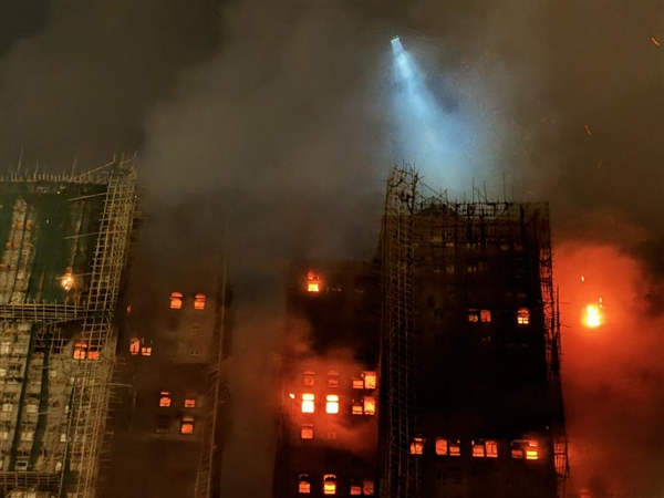 今日凌晨1时,财联社记者在香港大埔火灾事故现场发现,夜空中有多架无人机在火场上方盘旋。现场一名警务人员向记者确认,消防处及警方调用的无人机主要用于火场侦察与辅助照明。