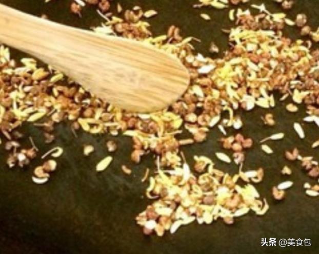 7、椒盐做法:花椒5g,小茴香5g,白芝麻3g,盐6克,把花椒和小茴香放在一个干净的锅里,小火焙干。这个过程大约需要十分钟,之间要不停的翻搅,以防炒糊,然后加入芝麻一起再炒2分钟左右,至芝麻炒熟,关火,用擀面杖擀成粉末状,然后加入食盐即可。