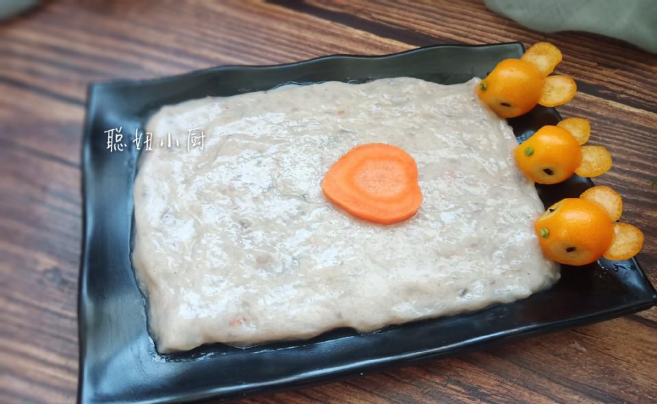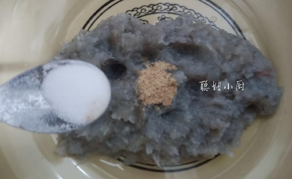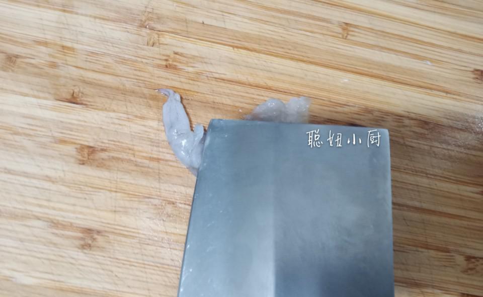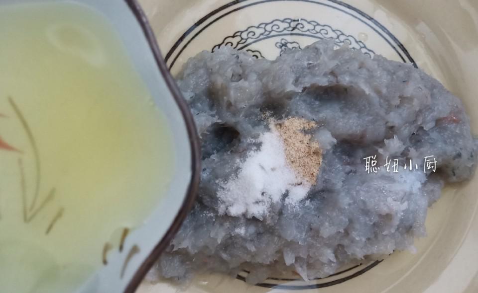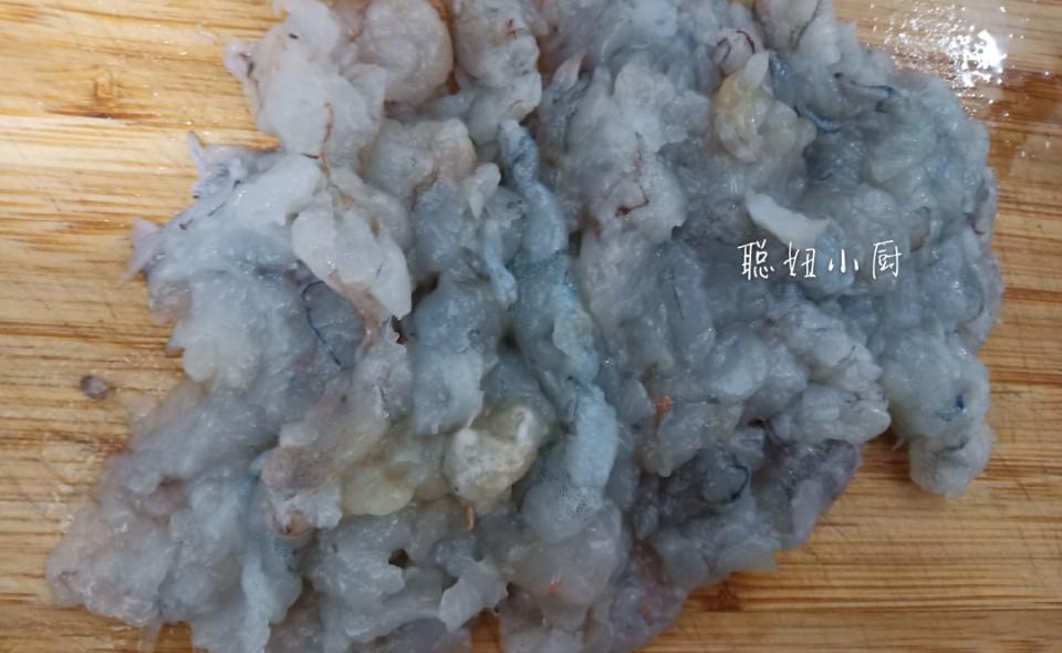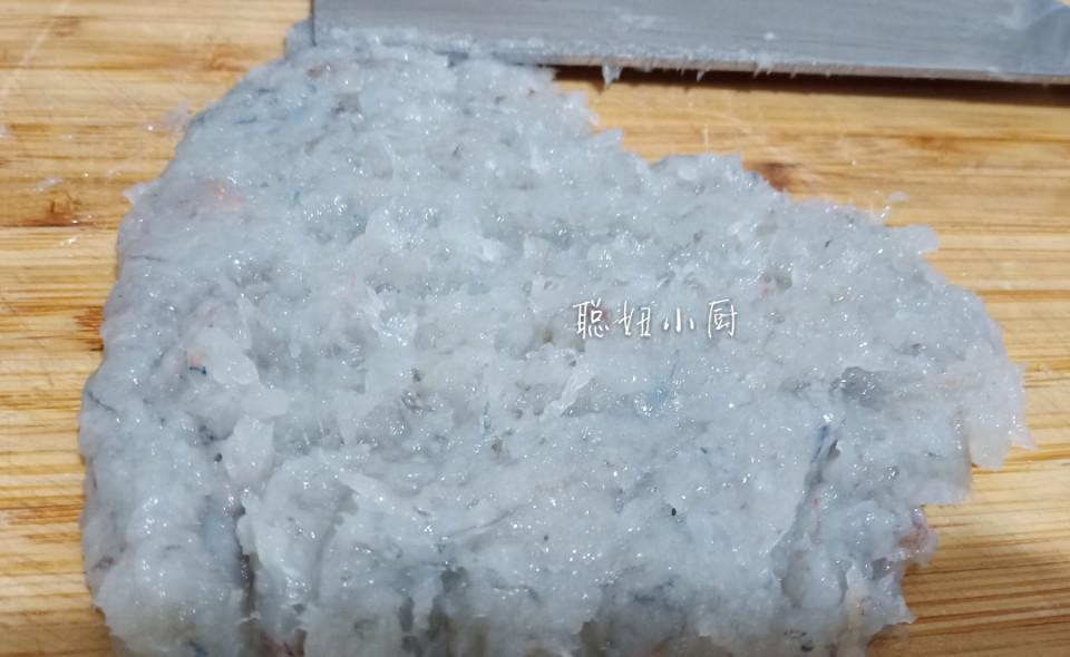 虾酱必须磨成泥,用刀背搅打,才能使虾滑嫩。